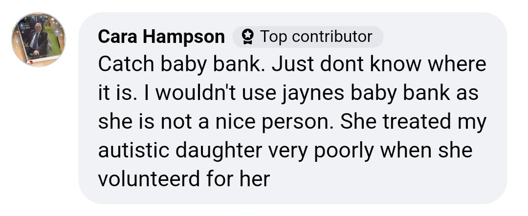 On 27/08/2025, the “Jayne’s Baby Bank” Facebook page posted the following statement: