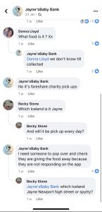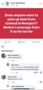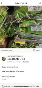 The leak highlights how food listed on Olio (2023–2024) was also shown on Facebook posts (2024–2025) with a different narrative. On Olio, collections appeared under Jayne’s own name. On Facebook, near-identical food was described in tiles such as “Iceland pick-up – You can’t give it out to the public yet.”