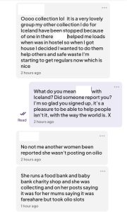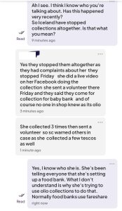 “Yes they stopped them altogether as they had complaints about her… she did a live video on her Facebook doing the collection… of course no one in shop knew as it’s olio.”