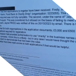 - Conflicting statements about status: Messaging alternates between “we own charity shops”, “awaiting registration”, “registered”, and use of a proposed CIC name, creating public confusion about the legal position.