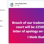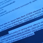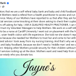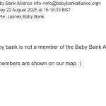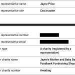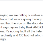 Summary: Materials reviewed (screenshots, emails, posts, signage, and forms) indicate a sustained pattern of misleading representation about charitable status, partnerships, qualifications, and fundraising activity by an operation using names including “Jayne’s Baby Bank,” “Jayne’s Mother & Baby Bank and Foodbank Fundraising Shop,” and variants.