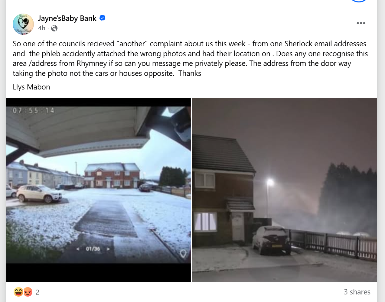 Summary: Materials reviewed (screenshots, emails, posts, signage, and forms) indicate a sustained pattern of misleading representation about charitable status, partnerships, qualifications, and fundraising activity by an operation using names including “Jayne’s Baby Bank,” “Jayne’s Mother & Baby Bank and Foodbank Fundraising Shop,” and variants.